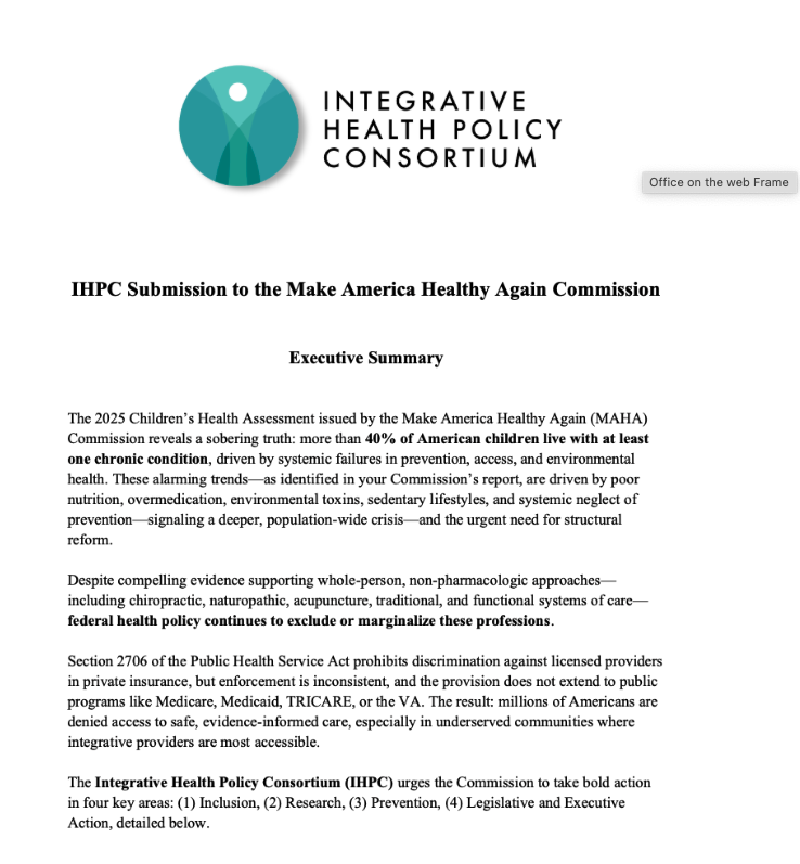 Use the Link Below to Share the Integrative Health Policy Consortium’s Policy Recommendations Submitted to the Commission